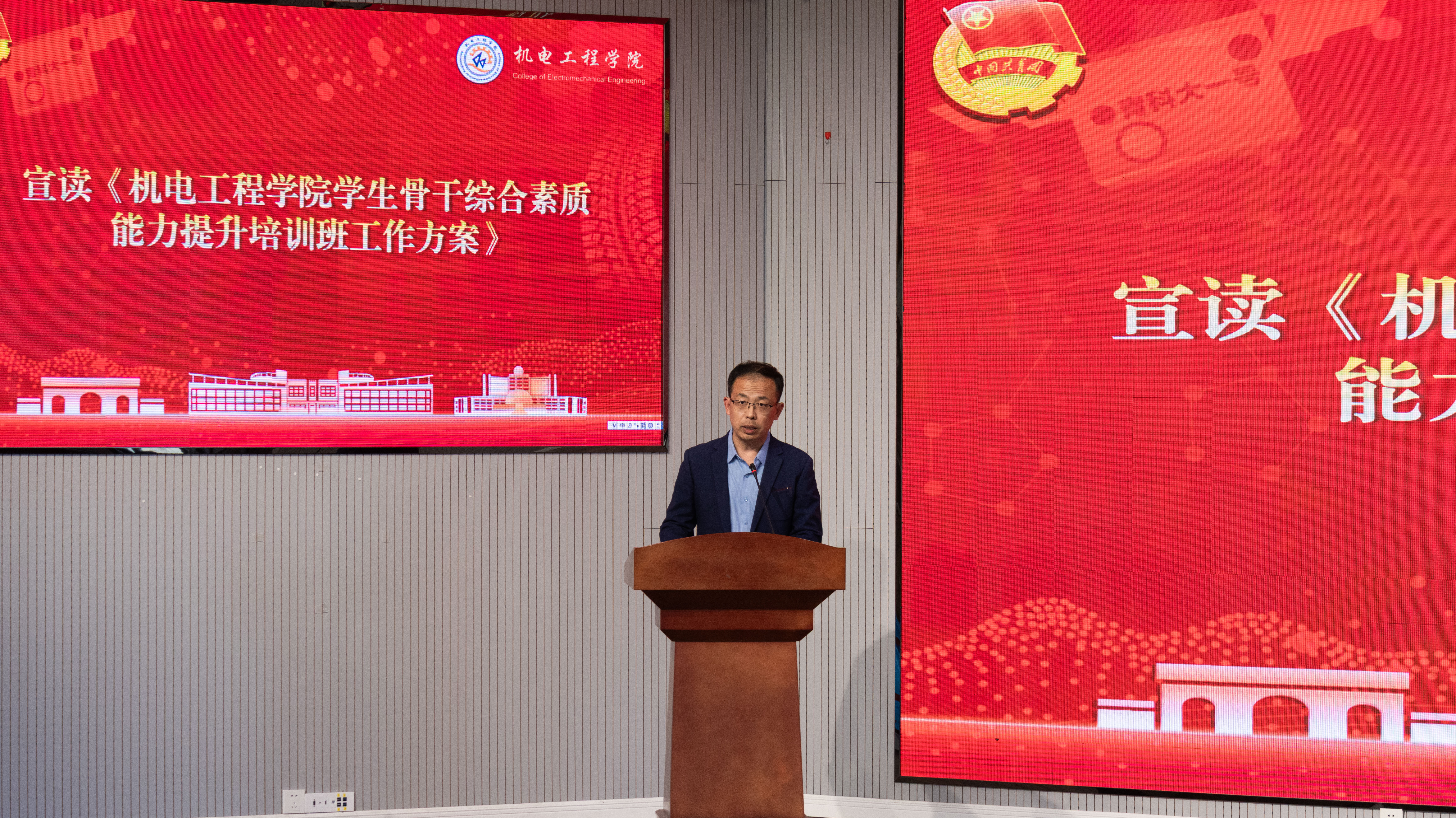 会上,逄柏鹏宣读了《机电工程学院学生骨干综合素质能力提升培训班实施方案》,明确了培训目标、课程安排与纪律要求;随后,朋辈领航导师聘任仪式顺利举行,进一步夯实了学生骨干培养的帮扶体系,为后续培训工作有序开展奠定坚实基础。