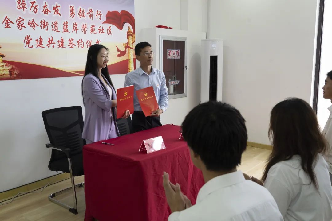 会上,学院与蓝岸馨苑社区举行了党建共建签约仪式,肖强与彭晓就党员教育、社会实践、志愿服务、文体活动等签订党建共建协议,并探讨制定了党建共建“三张清单”。王娟娟与彭晓共同为机电工程学院大学生社会实践基地揭牌。