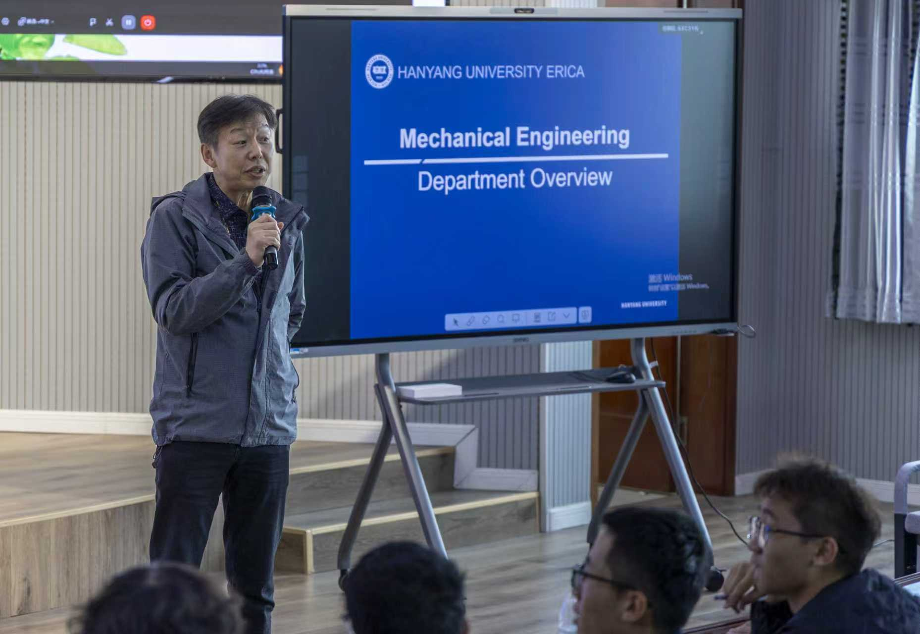 10月18日,机电工程学院在机电楼530会议室举办中外合作项目推介会。韩国汉阳大学梁铉益教授、赵南圭教授出席会议并分享留学经验,学院2025级辅导员和2025级中外合作项目学生参加会议,学院合作办学主任付平主持会议。