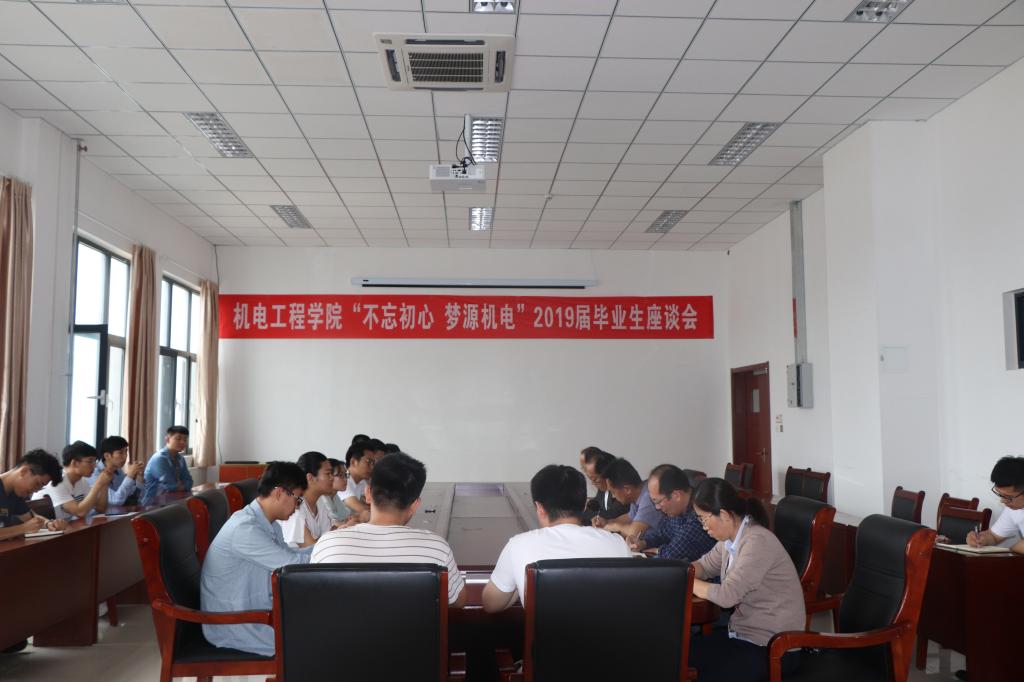 思源.传承----举办最后一次座谈活动。机电学院领导班子与优秀毕业生代表召开“不忘初心 梦源机电”毕业生座谈会,优秀毕业学子代表分别就教学、创新创业、实验、班级建设、学生教育等都提出了很多优秀建议,为学院的发展出谋划策。
