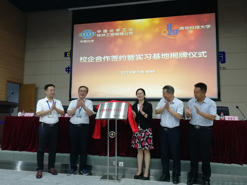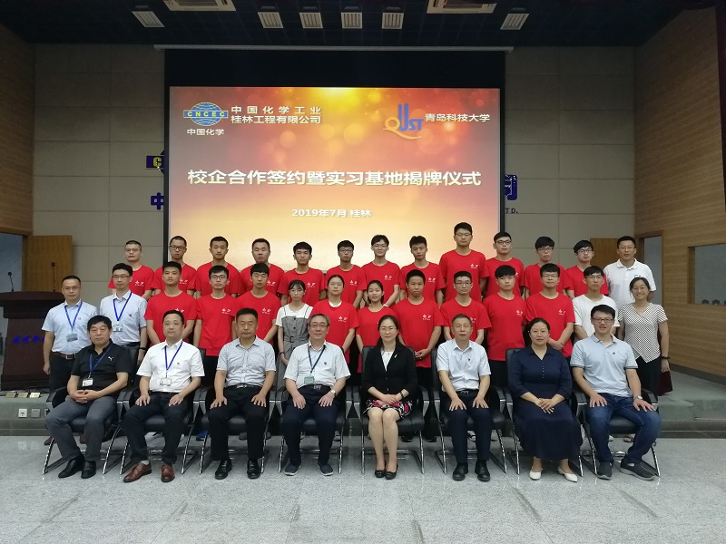 7月23日,机电工程学院与中国化学工业桂林工程有限公司隆重举行校企合作签约暨实习基地揭牌仪式。中国化学工业桂林工程有限公司党委书记王东明、副总经理顾兴元、张旭东及机电工程学院院长何燕、副院长郭建章出席本次会议。参加会议的还有青岛科技大学的选送实习的师生们以及中国化学工业桂林工程有限公司有关部门负责人。