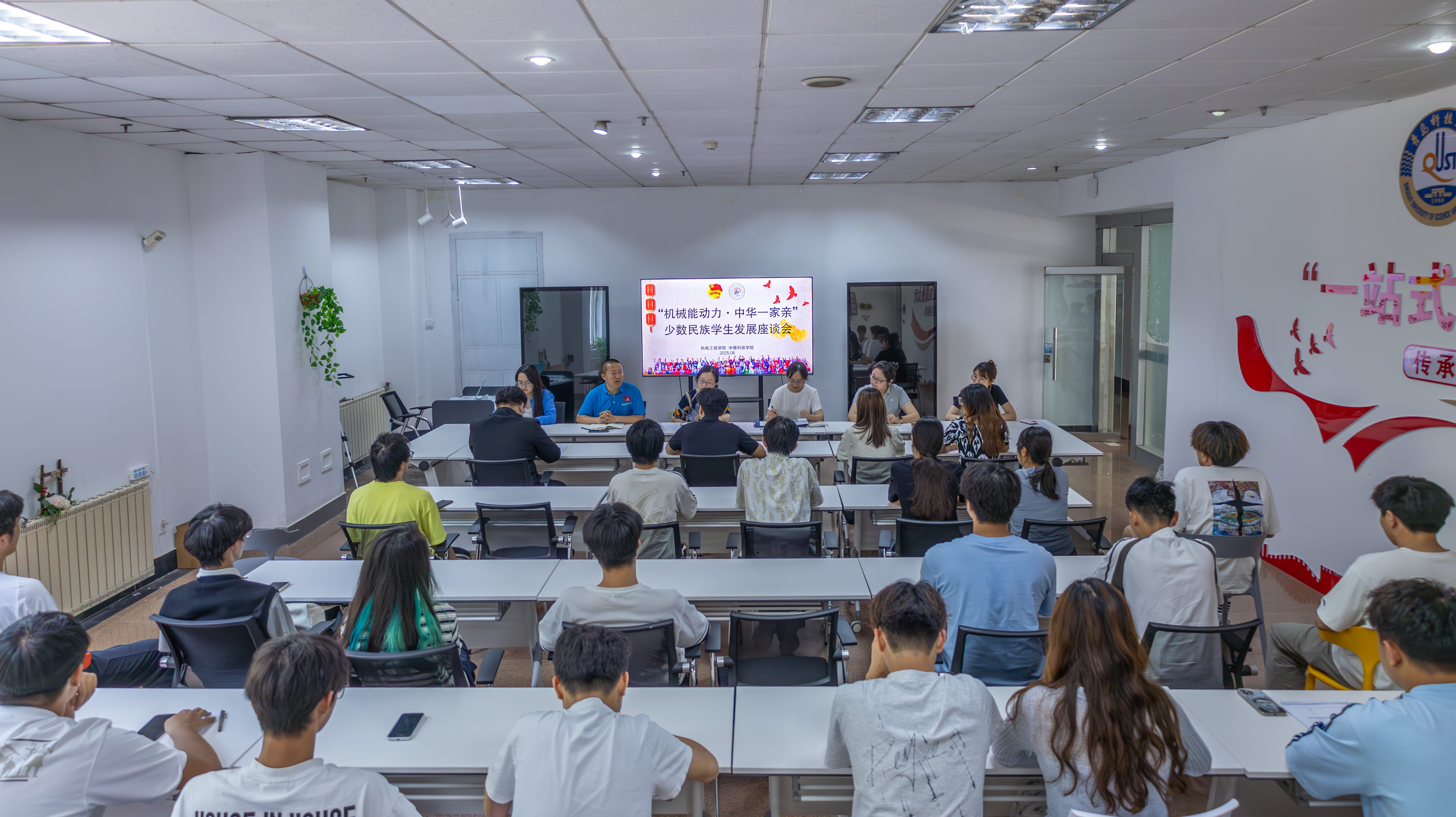 6月17日,机电工程学院在学业发展中心联合举办“同读一本书·共育石榴籽”——“逐梦新程·共绘未来”少数民族座谈会。学院党委副书记杨小明、学院专职辅导员代表,少数民族同学参加会议,周韫涵主持会议。